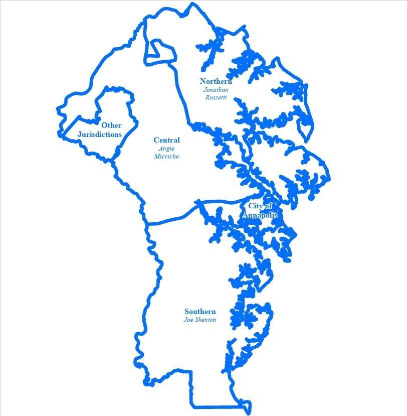 Description: This feature class represents the Anne Arundel County Road Districts and identifies the Urban Roads Superintendents (URS) that lead these districts for the Bureau of Highways' Road Operations division. Boundaries for Road Districts provided by DPW TechEng MGI, originally dated 2010. DPW BOH IMD GIS (Wayne McCready and Jeff Cox) cleaned up minor topological errors and added Other Jurisdictions polygons in June 2016. The boundary between Central and Southern was updated per DPW Road Operations (Alex Baquie) request in May 2017. The Supervisors field was added to this layer on 11/22/2019. The boundaries were updated and renamed to accommodate the 2023 District Realignment by Rachel Antonio in March 2023 as follows: Northern to "Eastern," Central to "Western", St. Margarets yard switched from Central to Eastern.